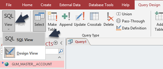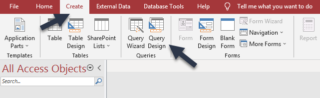 Now that the table is selected close all open tabs and then go the the Access Create tab and then select Query Design from the menu. It will look like the below image.