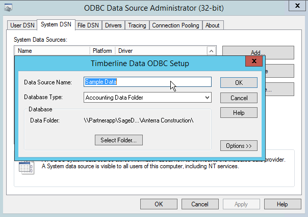 Open the Data source you think is attached to the specific Sage 300 company to verify the source path. It will have a driver called Timberline Data. It will look like the below image when opened.
