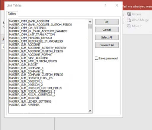 When you have the proper Data source setup or connected you will want to open Access to verify the Sage 300 Data has a duplicate.